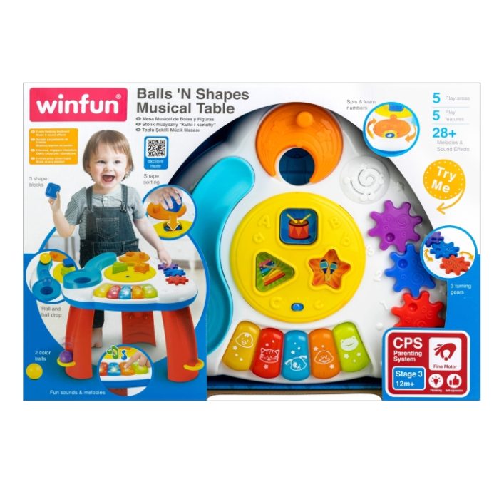 Kvalitetni stajači centar za igru proizvođača Winfun. Stol je zanimljiv, s puno integriranih različitih igračaka, zvukova, oblika i dr. Ujedno pomaže bebi da stoji i drži ravnotežu. Prikladan za bebu od 12 mjeseci. |
