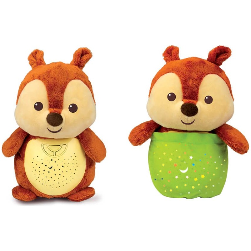 WinFun 2u1 projektor vjeverica kombinacija je igračke s projektorom koja prikazuje sliku zvejzdanog neba, a koji dodatno smiruje bebu svirajući uspavanke. Zbog male veličine, može se nositi sa sobom.
