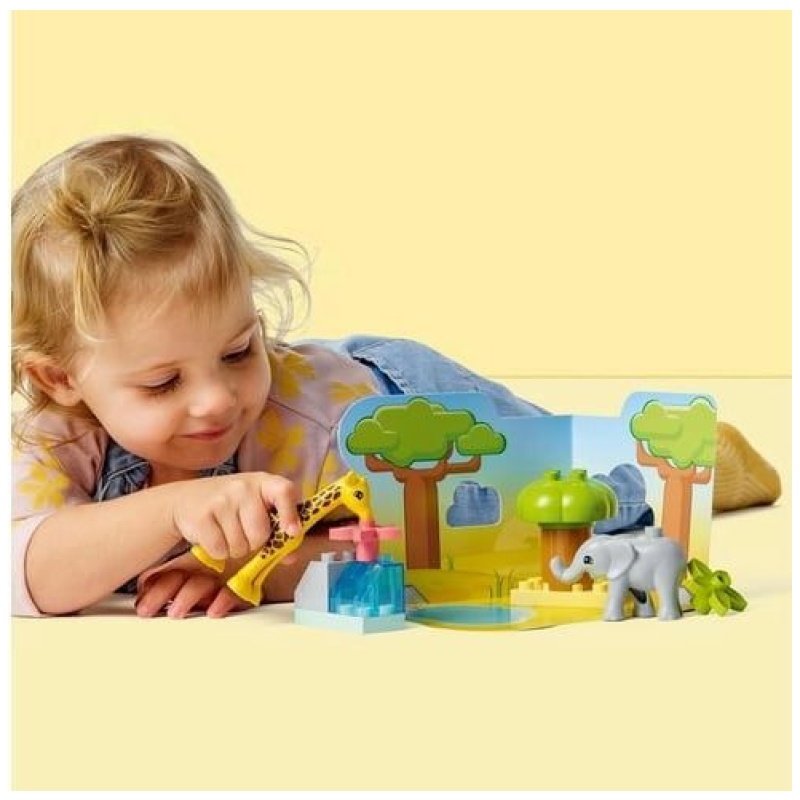 Upoznajte predškolsku djecu sa životinjama iz Afrike uz preslatkog malog slona i malu žirafu. Tu su i cvijeće i stablo koje velike figurice životinja mogu grickati te trodimenzionalna igraća podloga sa slikom šume koju djeca mogu istražiti. Raznolika igračka sa safarijem sjajna je za razvoj dječjih vještina izražavanja i finih motoričkih vještina dok uživaju u igri s najslađim životinjama u prašumi.