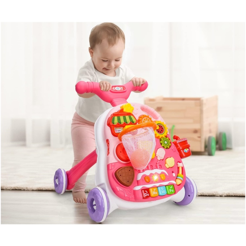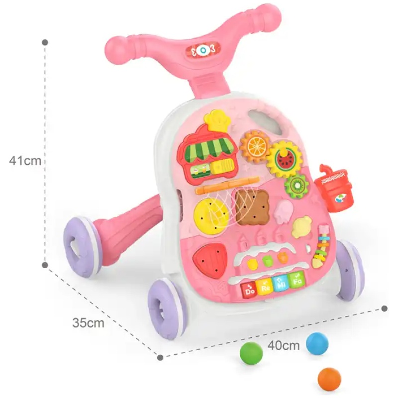 2 u 1 Guralica & Stol pomaže bebi da savlada oblike, boje, životinje, glazbu i još mnogo toga! Ova guralica ima još jednu jedinstvenu karakteristiku – lako se pretvara u šareni stol za igru. Uključuje blokove u obliku životinja, okretni zupčanik, glazbenu tipkovnicu i još mnogo toga, pružajući razne zabavne načine igre za bebe.