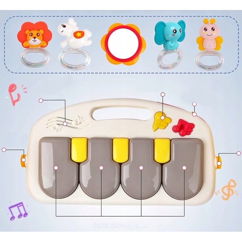 Ali tu nije kraj! Ova igračka također dolazi s prekrasnim i interaktivnim pianom. Pianino ima melodije, pjesme i svjetla koja će pružiti djetetu sate zabave i angažmana. Može se izvaditi iz hodalice i koristiti kao glazbeni instrument za ljuljanje u krevetiću.
