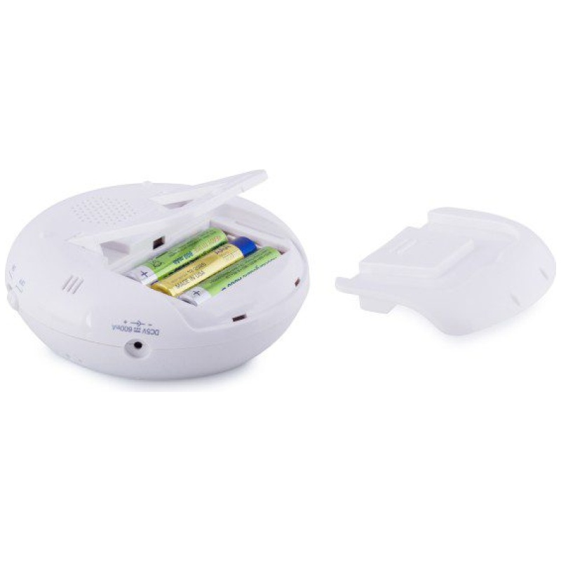 Roditeljska jedinica opremljena je litijumskom baterijom koja se može puniti putem USB kabela (uključena), dok dječja jedinica radi s punjivim AAA alkalnim baterijama.
