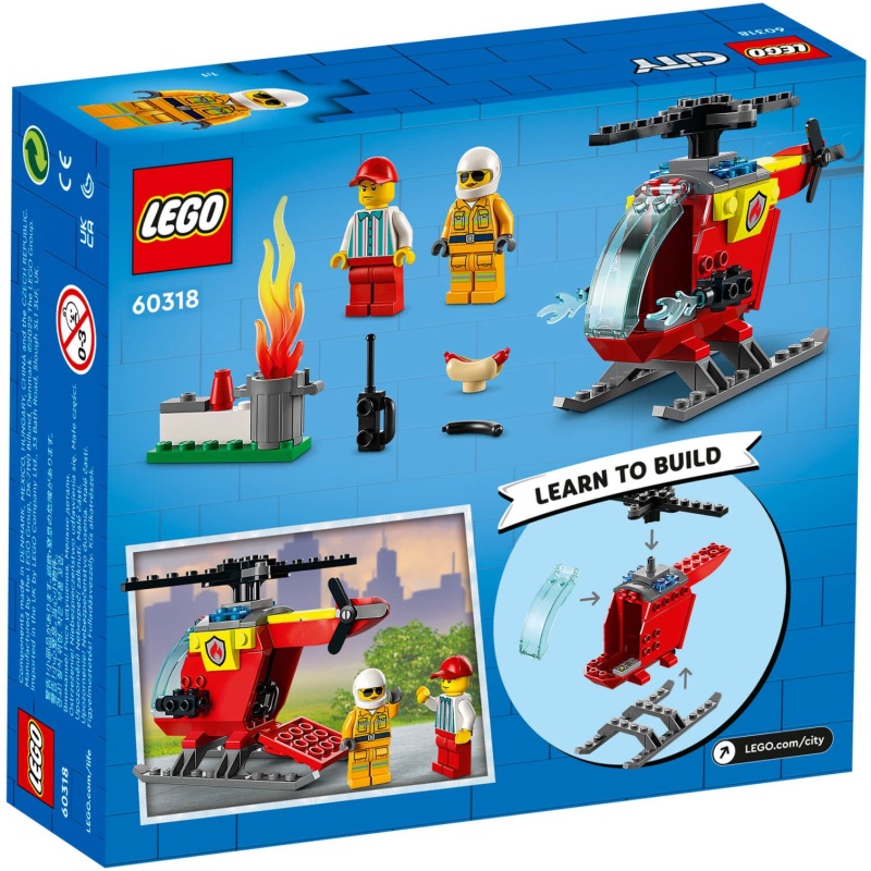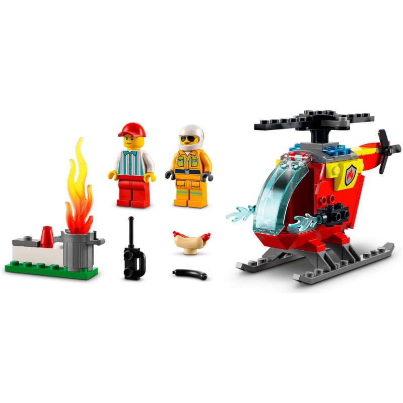 Jao! Prodavač hotdogova u nevolji je, a njegova kanta za otpad gori! Pridruži se vatrogascu iz LEGO® Cityja u fora vatrogasnom helikopteru i kreni u zabavne pustolovine gašenja vatre. Odleti do mjesta požara i vatrogasnim aparatom ugasi plamenove. Kad osiguraš cijelo područje, dobro se odmori i uživaj u ukusnom zalogajčiću… Ako voliš zagoreni hotdog!