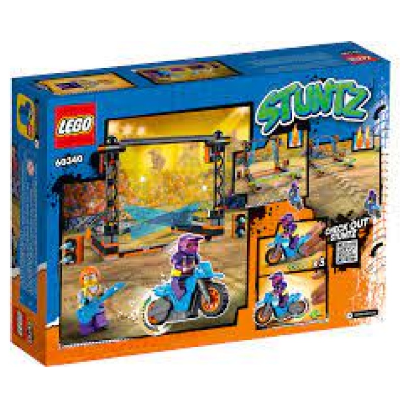 Pridruži se Shirley Keeper iz televizijske serije LEGO® City Adventures i fantastičnom vozaču Wave-Dashu iz ekipe Stuntz u Vratolomnom izazovu s oštricama! Pokreni motocikl za vratolomije na zamašnjak i lansiraj ga tako da sigurno proleti kroz prepreke dok se oštrice ne obruše na njega!