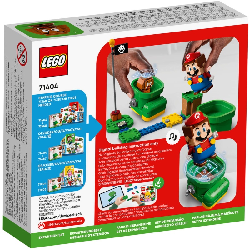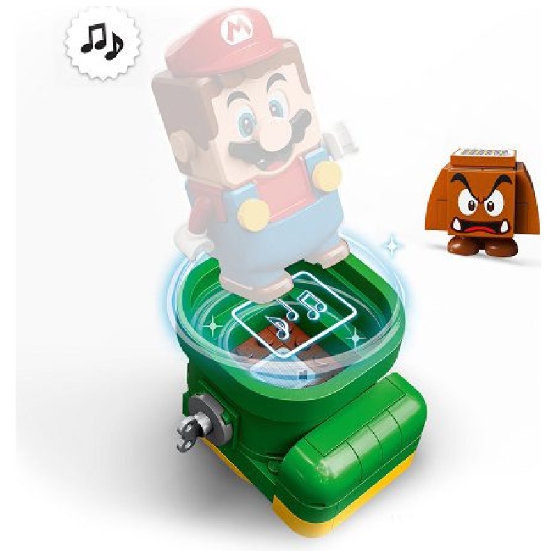 Opremi se i zakorači u nezaboravnu zabavu u svijetu LEGO® Super Mario™! Pomozi LEGO® Mariju™, LEGO® Luigiju™ ili LEGO® Peach™ (figure nisu dio kompleta) da poraze Goombu i uzmu njegovu veliku zelenu cipelu! Onda skakući uokolo u cipeli i pravi salta da prikupiš sjajne nagrade u novčićima! Kada naiđeš na neprijatelja, iskoči iz cipele i zgazi ga da zaradiš još novčića!