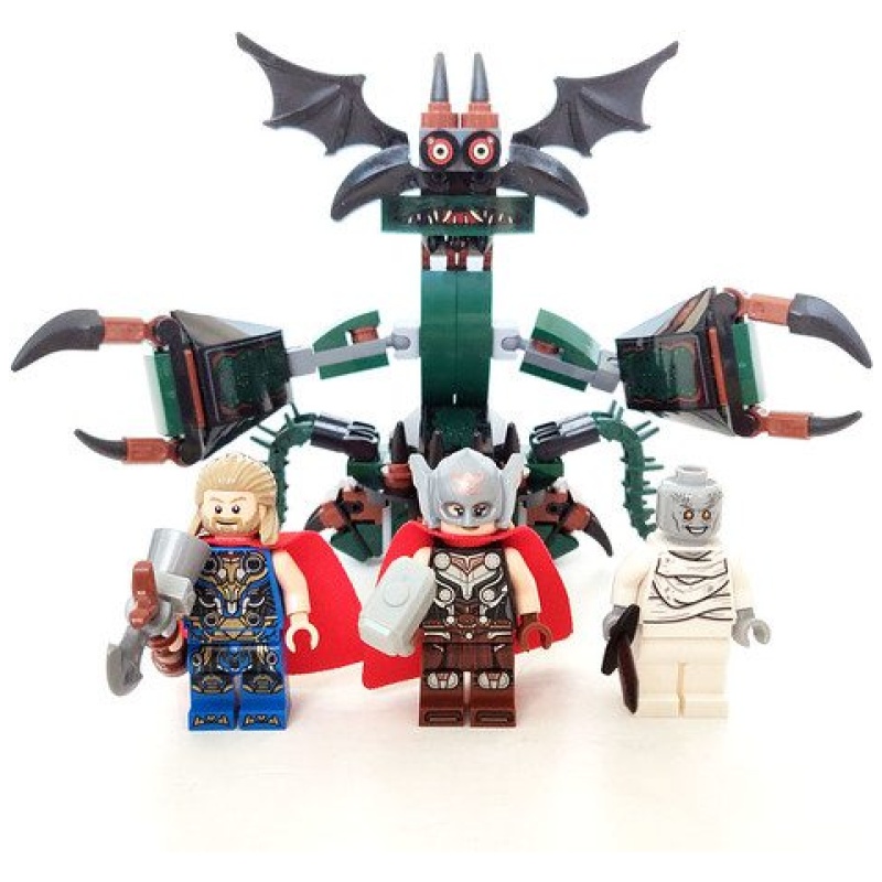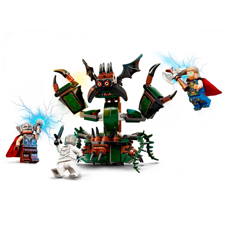Poklonite superjunacima od 7 godina i starijima poslasticu u obliku kompleta LEGO® Marvel Napad na Novi Asgard (76207). U vrhunskom akcijskom kompletu igračaka po uzoru na film kuće Marvel Studios Thor: Love and Thunder junaci se suprotstavljaju stvorenju iz dječje mašte. Čudovišni komplet igračaka koji obožavatelji Thora moraju imati Djeca se mogu boriti protiv golemog čudovišta iz noćnih mora u kompletu sa superjunacima. U složivom kompletu dolaze 3 popularne figurice: tu su Gorr, koji priziva Čudovište iz Sjene, Thor sa sjekirom Stormbreaker i Mighty Thor s čekićem Mjölnirom. Divovsko čudovište ima ruke i kandže sa zglobovima za više mogućnosti igre i izlaganja. Slaganje postaje još zabavnije uz besplatnu aplikaciju LEGO Building Instructions s intuitivnim, digitalnim alatima za vizualizaciju, kao što su alati za približavanje i okretanje.