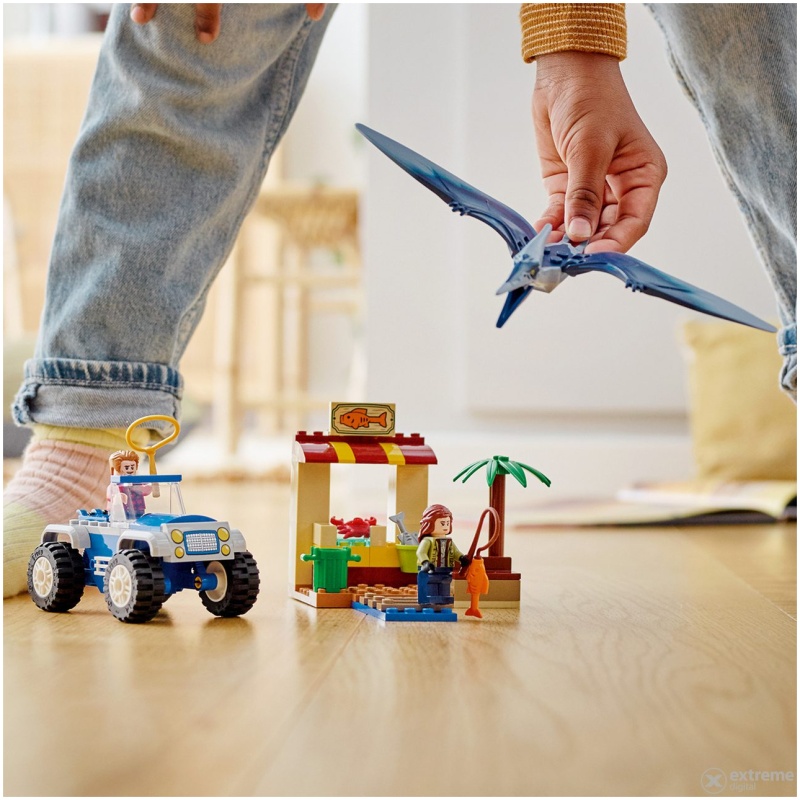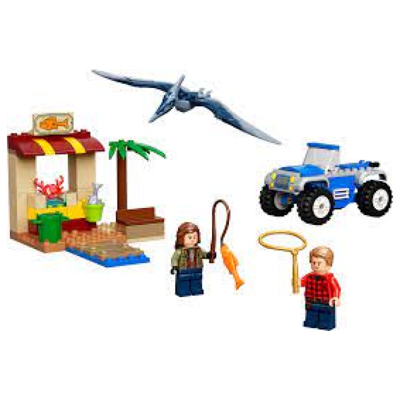 Nevjerojatni komplet nadahnut filmom Jurassic World Dominion ima sve potrebno za akcijsku igru. U njemu su mol od kocaka, štand za prodaju ribe, figurice Owena Gradyja i Maisie sa štapom za pecanje i lasom te figura pteranodona. Neka lov počne!