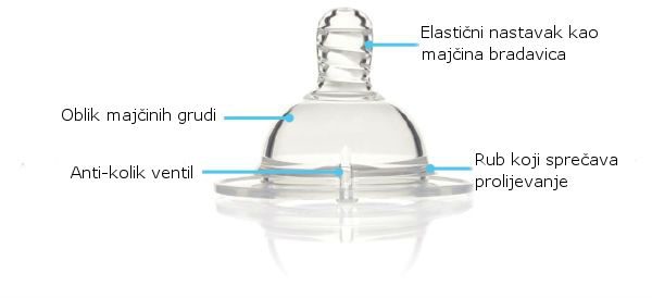 NAPOMENA: Očistiti bocu mlakom pjenušavom vodom i isprati. Nakon svakog hranjenja odmah saprati bocu vodom kako bi čišćenje bilo lakše. Prije prvog i poslije svakog novog hranjenja bočicu je potrebno očistiti te sterilizirati ili prokuhati u čistoj ključaloj vodi.
