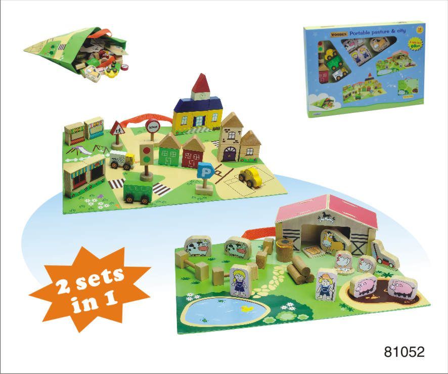 Drvena maketa farme i grada, 60 dijelova u torbi za slaganje