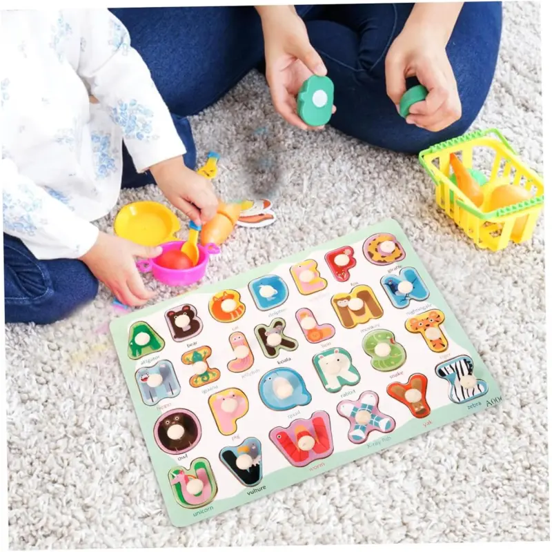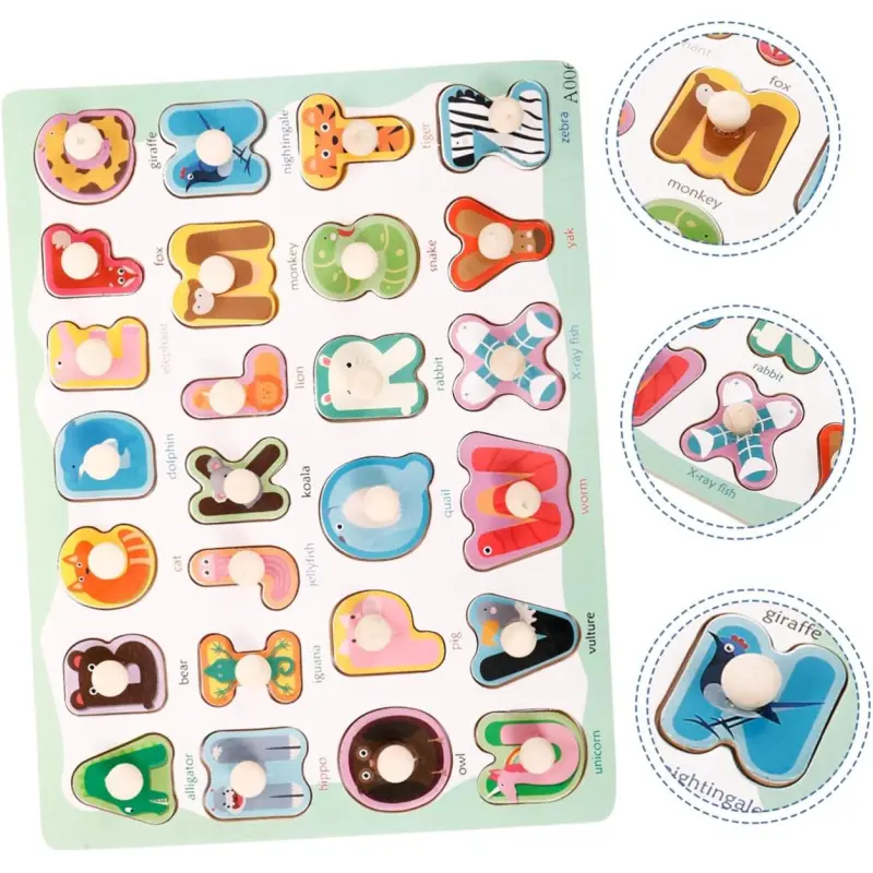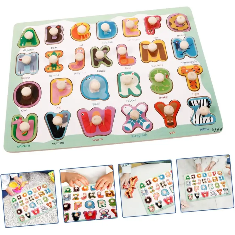 Drvena abecedna slagalica – Ugrađeni dijelovi slagalice pružaju izazovne aktivnosti koje pomažu djeci u razvoju vještina rješavanja problema.