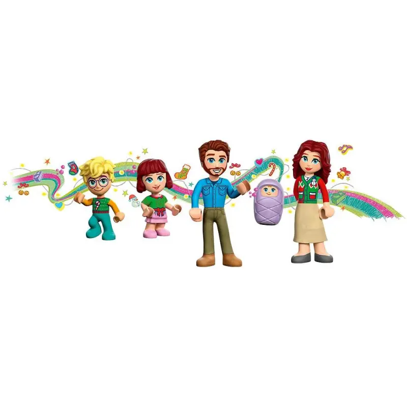 Set uključuje 5 likova i mnogo božićnih dodataka. Ovaj LEGO set sadrži malu Paisley, malog Ollyja, Paisleyinu mamu, tatu i bebu sestru, 2 bebe životinje i figuricu snježne mačke.