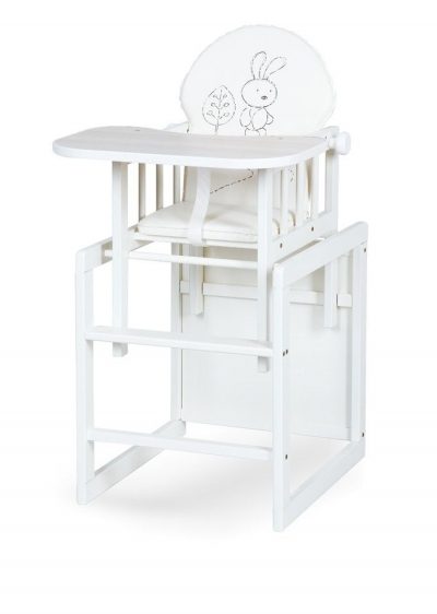 Ova praktična i kvalitetna drvena hranilica koja poslije može biti stol i stolica prikladna je za djecu od 0 do 5 godina. Kao visoka hranilica koristi se do 2. godine života, a poslije se jednostavno pretvara u stol i stolicu i može se koristiti sve do djetetove 5. godine. Lagana je za održavanje. Pladanj se po potrebi skida.