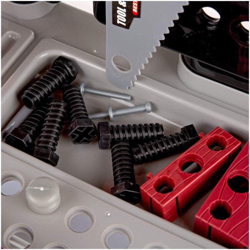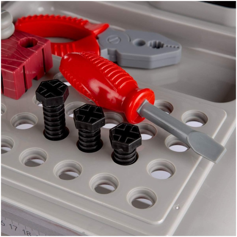 Opremite arsenal mladog majstora sa svim osnovnim alatima koje će im trebati za izgradnju, popravak ili konstrukciju njihovih remek-djela! Sa preko 45 dijelova koji su identični s pravim alatom, ova impresivna samostojeća dječja radna jedinica uključuje cijeli niz realističnih matica i vijaka različitih veličina, kao i čekić, pilu i mnoge druge alate koji će ih oduševiti!