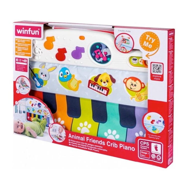 Za roditelje, Animal Friends – Piano donosi praktičnost i sigurnost. Lako se pričvršćuje na krevetić, a kasnije se transformira za igru na trbuhu ili sjedenje, čime vam štedi dragocjeno vrijeme koje možete provesti u igri i zagrljajima. Četiri različita zvuka instrumenata i zabavni zvukovi životinja s bljeskajućim svjetlima održavaju pažnju vašeg djeteta, dok vi možete biti spokojni znajući da je igračka izrađena od sigurnih, kvalitetnih materijala.