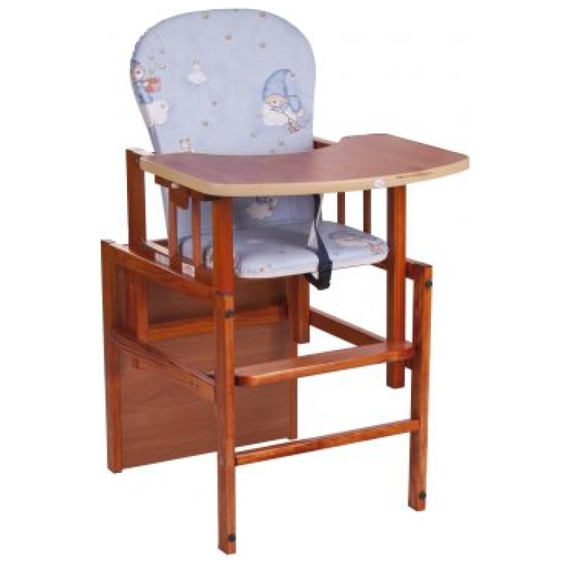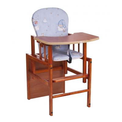 Ova praktična i kvalitetna drvena hranilica koja poslije može biti stol i stolica prikladna je za djecu od 0 do 5 godina. Kao visoka hranilica koristi se do 2. godine života, a poslije se jednostavno pretvara u stol i stolicu i može se koristiti sve do djetetove 5. godine. Lagana je za održavanje. Pladanj se po potrebi skida.
