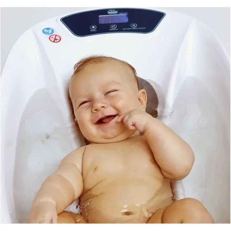 Podesite vagu na kilograme i jednostavno stavite bebu u kadu da biste dobili precizno očitavanje težine sa ili bez vode.