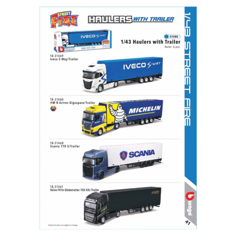 Street Fire Haulers With Trailer, Asst 1:43