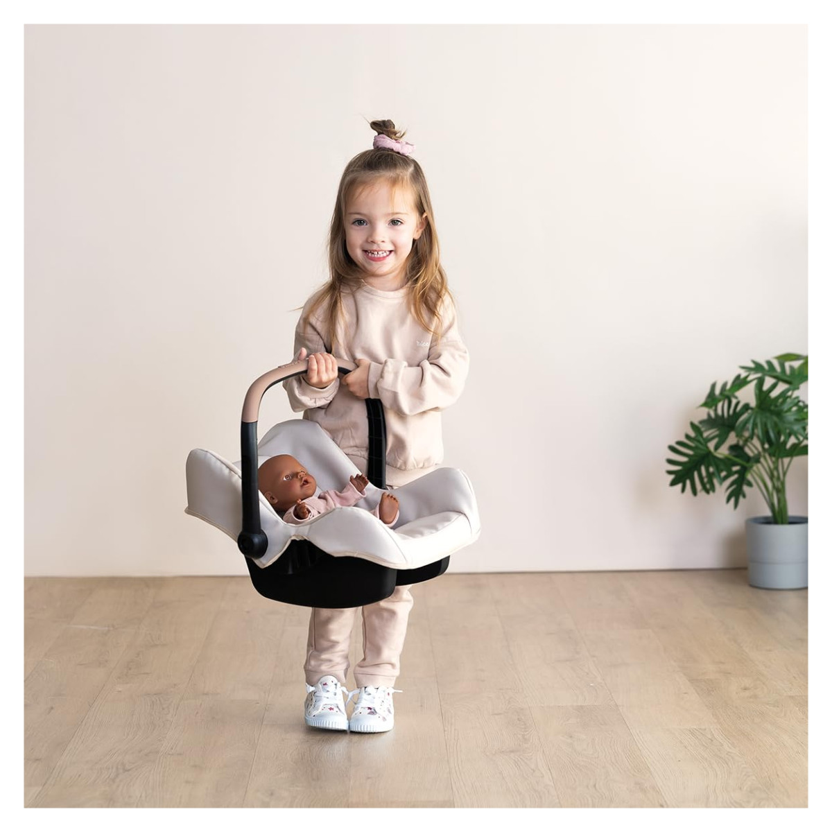 Ova autentična autosjedalica za lutke s prepoznatljivim Maxi Cosi dizajnom pretvara dječju igru u realističnu avanturu. Praktična, sigurna i estetski privlačna, stvorena je za male roditelje koji žele svojoj lutki pružiti istu pažnju i sigurnost kao i pravi roditelji. Bez brige o neredu – presvlaka je izrađena od materijala koji se lako briše, pa je uvijek spremna za novu igru.