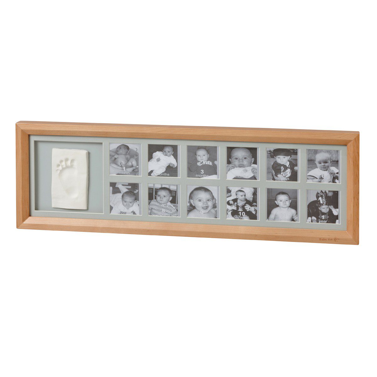 Okvir za 12 fotografija i otisak, kronološki prati prvu godinu bebe.