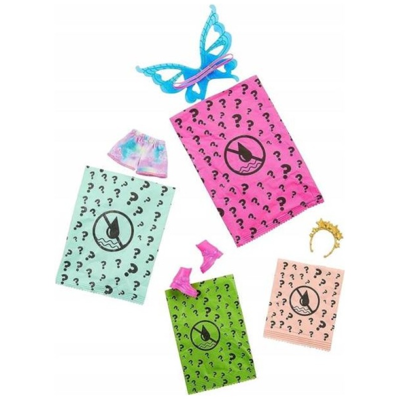 U vrećicama ćete pronaći modne dodatke koji će vašu Barbie lutku pretvoriti u pravu svemirsku kraljicu. Tu su cipele s motivom mjeseca, galska kruna za glavu i sjajna, predivna krila. Ali to nije sve!