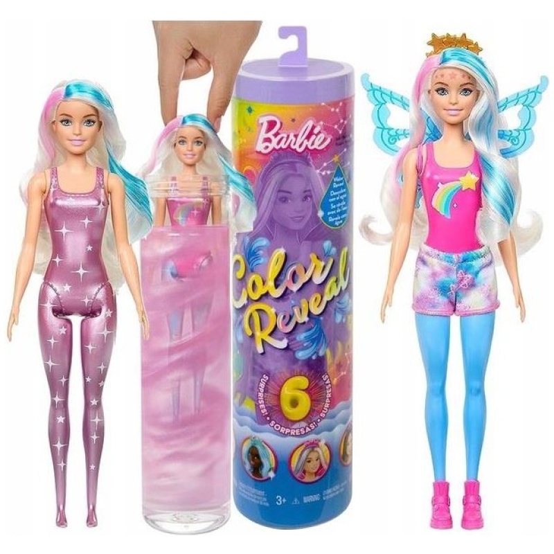 Opustite se i pripremite se za nevjerojatno putovanje kroz svemir sa Barbie lutkama iz serije Color Reveal Rainbow! Ova linija lutaka donosi nevjerojatno iskustvo otvaranja paketa koje će vas oduševiti. Svaka lutka dolazi sa 6 iznenađenja koja će vas ostaviti bez daha!