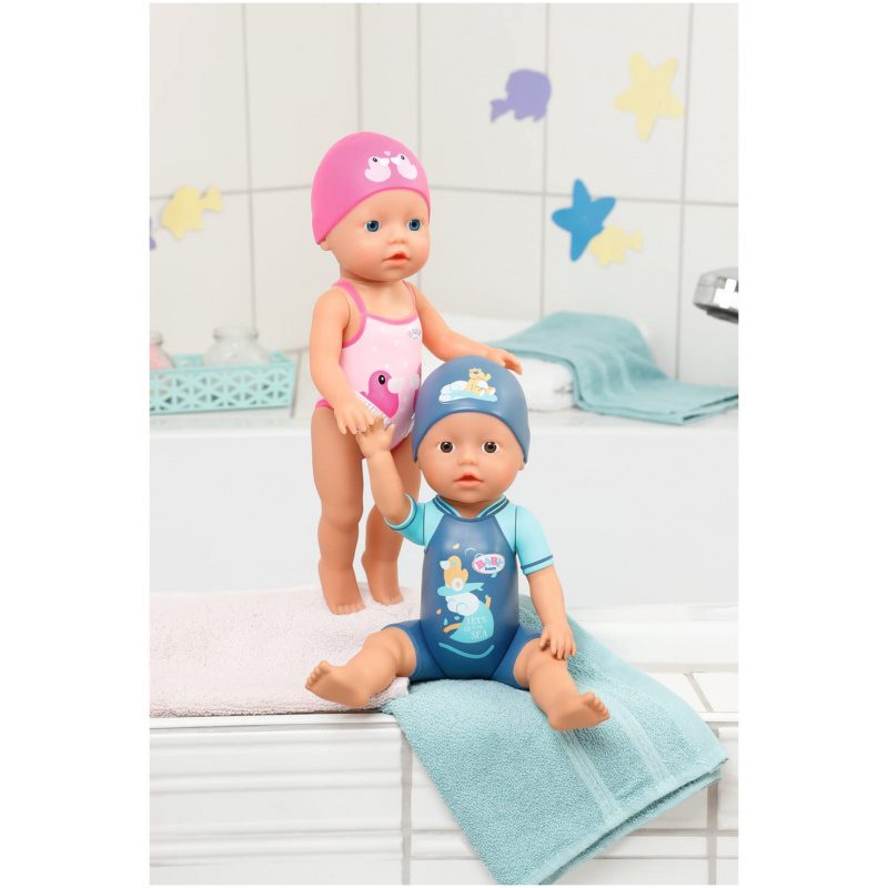 Vrijeme za kupanje postalo je još zabavnije uz lutke Baby Born Plivač. Ove slatke male lutke mogu plivati kraul ili leptir stilom jednostavnim okretanjem ruku unatrag. Njihovi kupaći kostimi i kape prilagođeni su njihovim tijelima što ih čini još jednostavnijim za igru u vodi. Plivač je savršena lutka za brčkanje u kadi, moru ili bazenu. Lutka je dostupna u 2 boje.