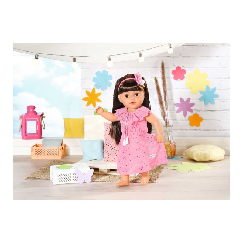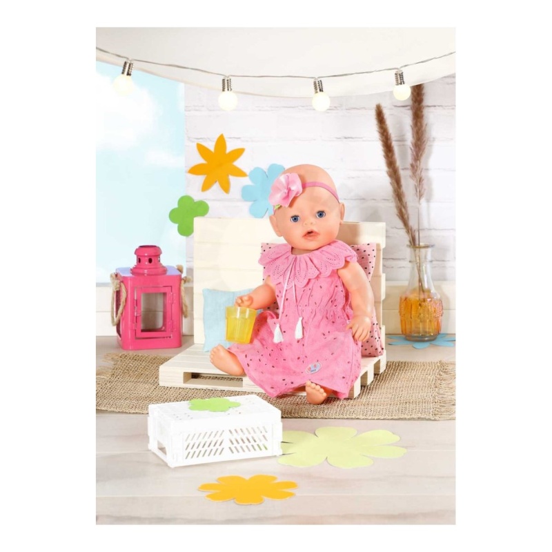 Zamislite samo koliko će sretna biti vaša djevojčica dok oblači svoju omiljenu BABY born lutku u ovu predivnu haljinu. Osim haljine, set uključuje i traku za kosu s velikim ružičastim cvijetom, koji savršeno upotpunjuje cijeli izgled. Ovo nije samo haljina, već cijeli modni set koji omogućuje bezbroj sati kreativne igre i izražavanja.