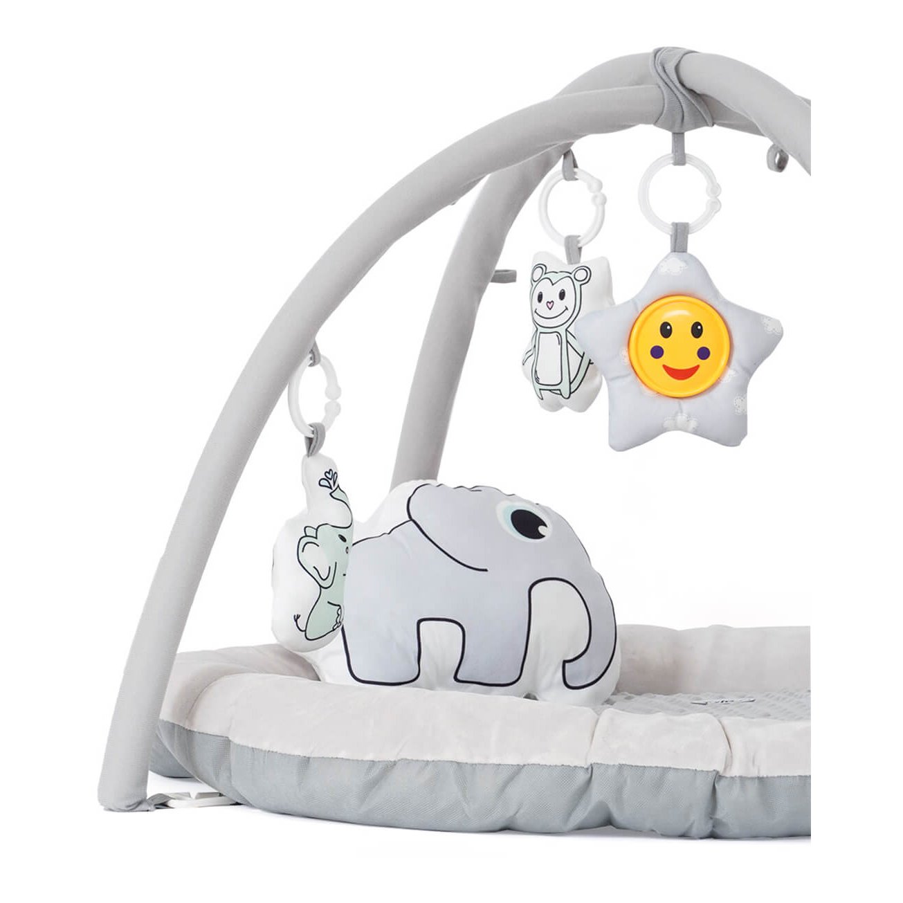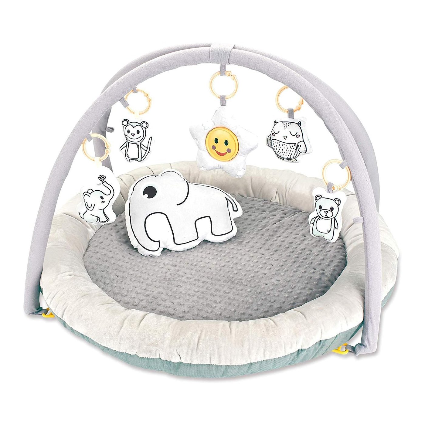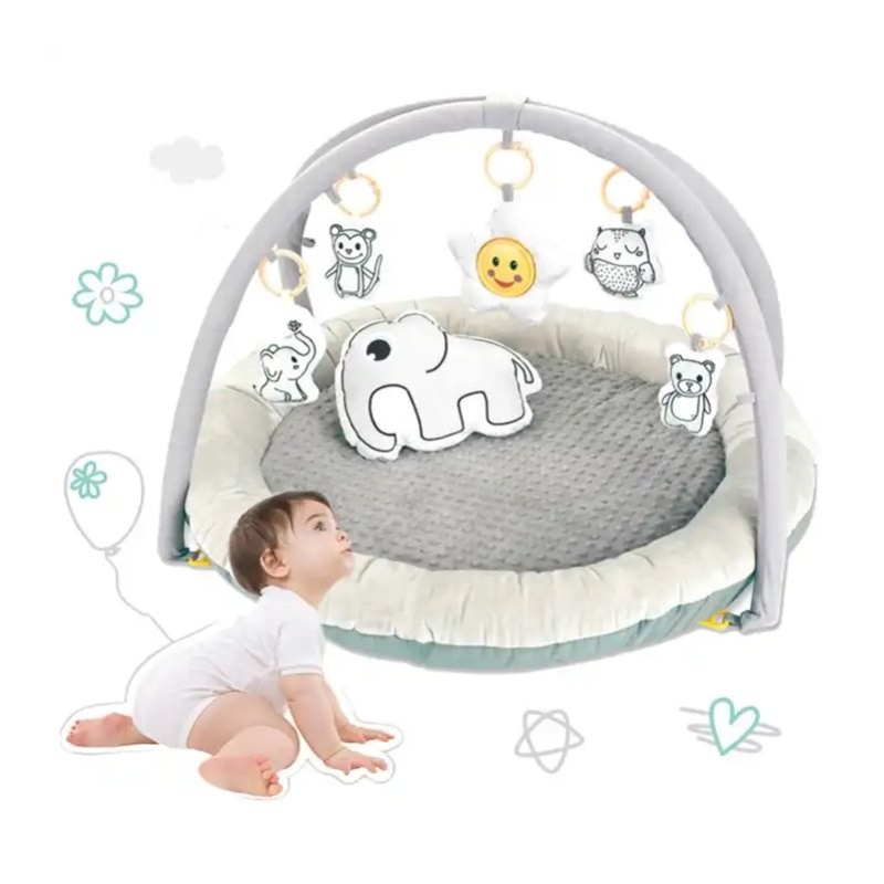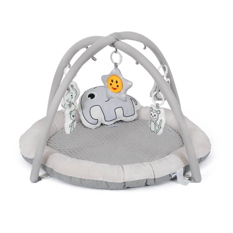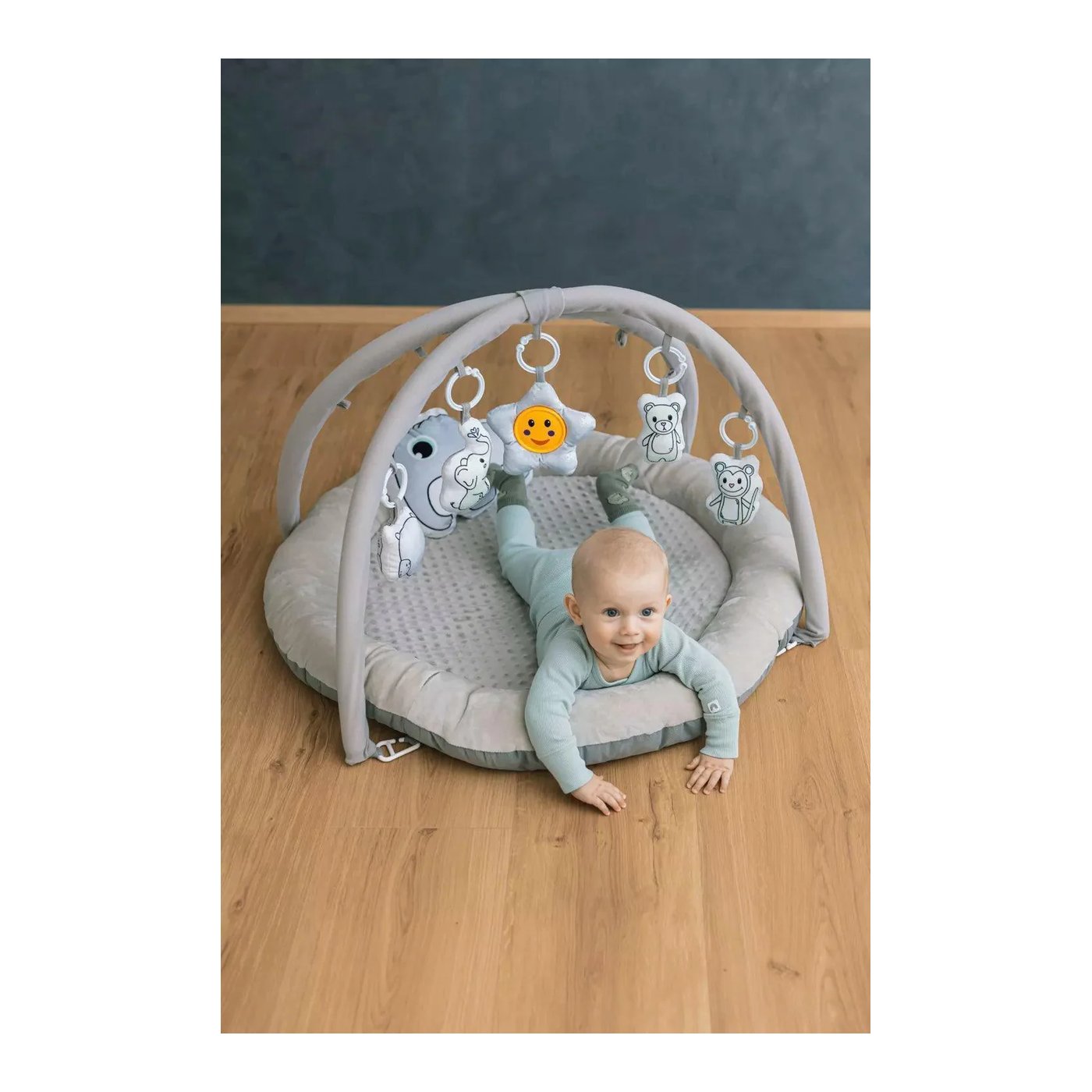 Osim što pruža bogatu senzornu stimulaciju, Baby Gym podloga za igru potiče i psihomotorni razvoj. Njen udoban dizajn idealan je za igru na trbuhu, omogućujući bebi da ojača mišiće i istražuje svijet iz nove perspektive. Promatrajte s ponosom dok vaša beba udara nogicama i pokušava dodirnuti viseće igračke iznad sebe, razvijajući tako koordinaciju i snagu.