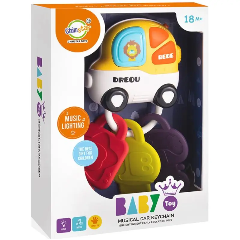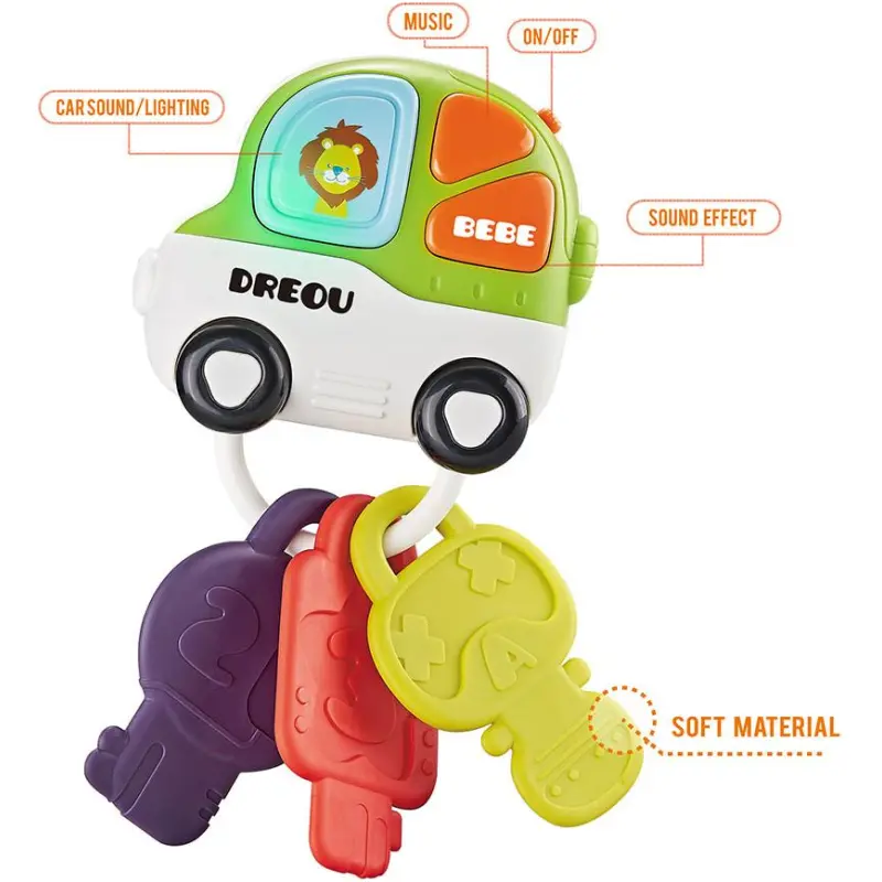 S ugrađenim svjetlima i glazbom, vaša beba će biti očarana otkrivajući svijet zvukova i svjetala. Ovi ključevi također dolaze s tri obojena ključa koji imaju igračku za grickanje i zvečku. Ključ s okretnim dijelom pomaže u razvijanju fine motorike vaše bebe.