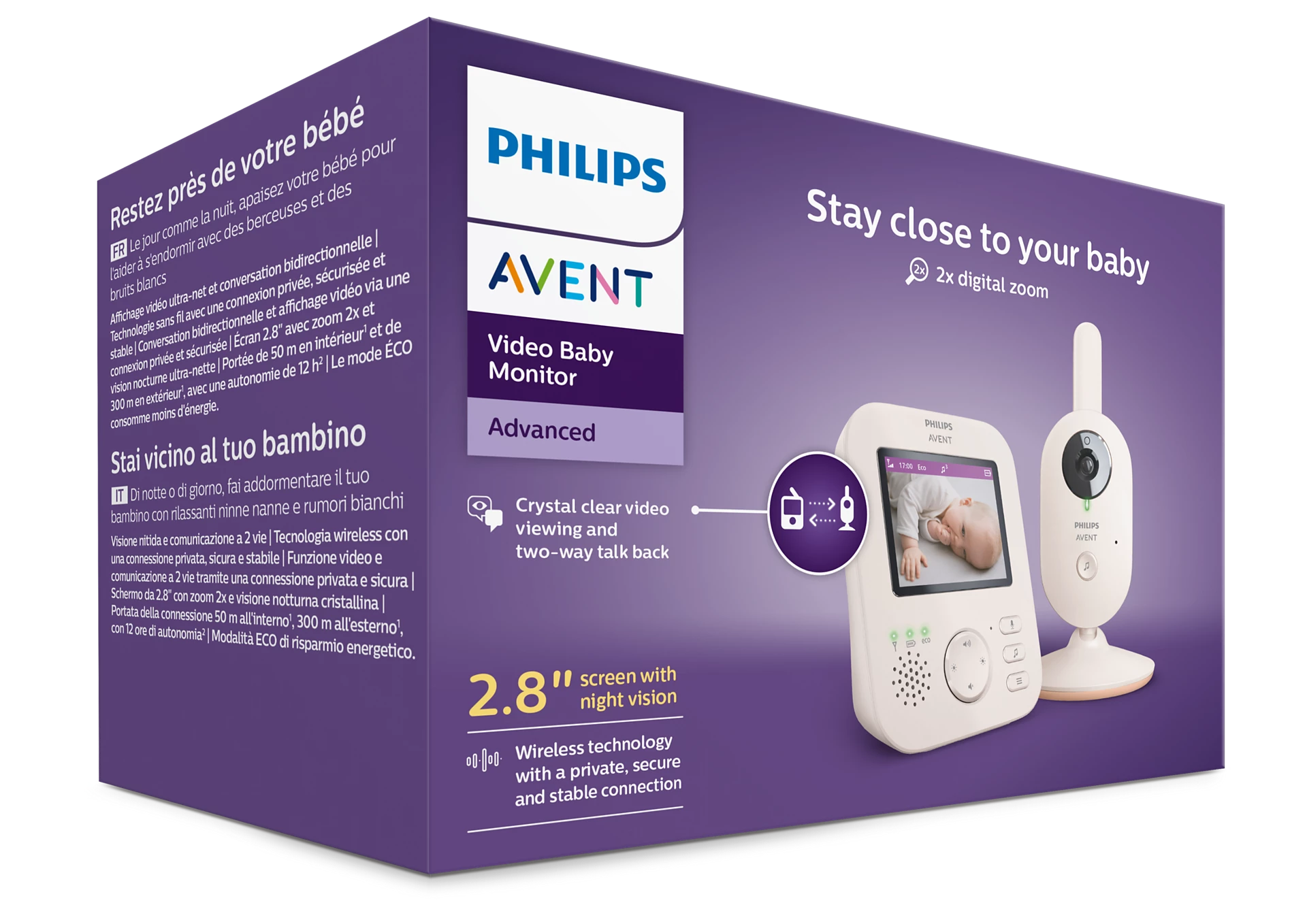 Philips Avent Digital Video Baby Monitor SCD881/26 osigurava sigurnu vezu s vašom bebom uz kristalno čist zvuk i sliku. Dvosmjerna komunikacija omogućuje umirujući glas na dohvat ruke.