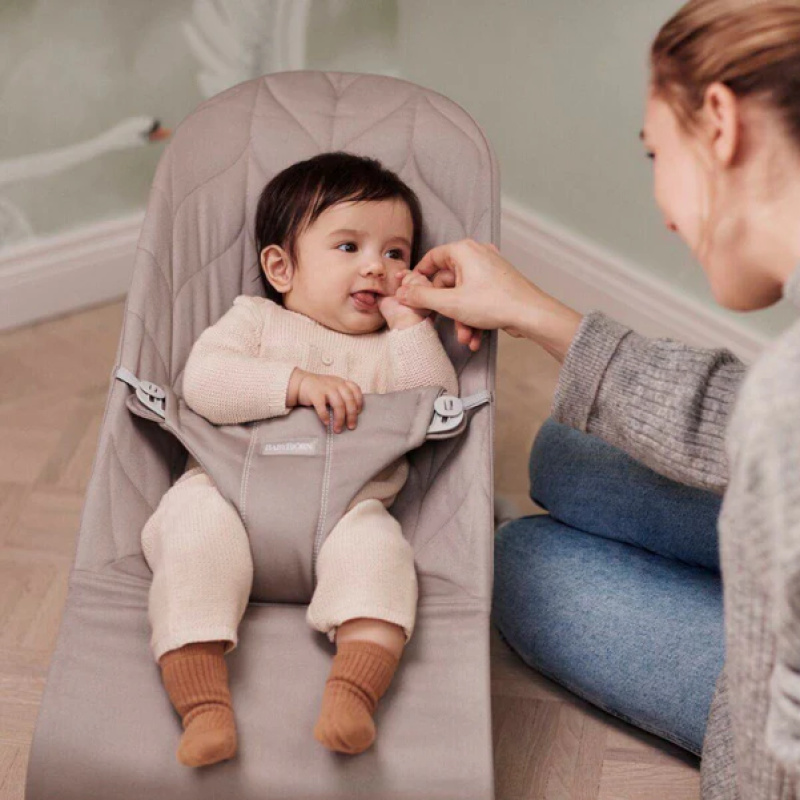 Njena prepoznatljiva elegancija i dizajn u boji Sand Gray donose smirenost i stil u svaki prostor, dok istovremeno pružaju udobnost i sigurnost vašem djetetu.
