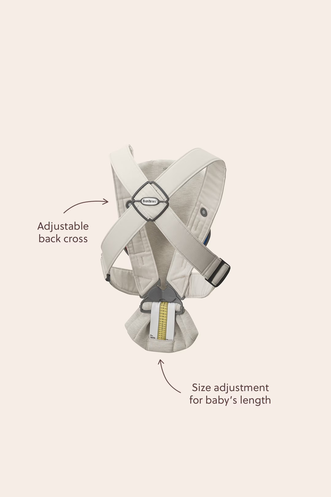S tri različite pozicije nošenja, Baby Carrier Mini se lako prilagođava svim fazama rasta vašeg djeteta. Osim što je sigurna i udobna za vaše dijete, također je iznimno praktična i za vas – od XS do XXL, ova nosiljka odgovara većini roditelja, omogućujući vam da uživate u svakom dragocjenom trenutku s vašom bebom, bez dodatnog stresa.