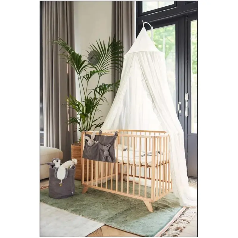 Jollein Baldahin 245cm Klamboe stvara ugođaj predivnog vintage izgleda, pretvarajući dječji krevetić u ugodan prostor za spavanje. Pruža toplinu i osjećaj sigurnosti.