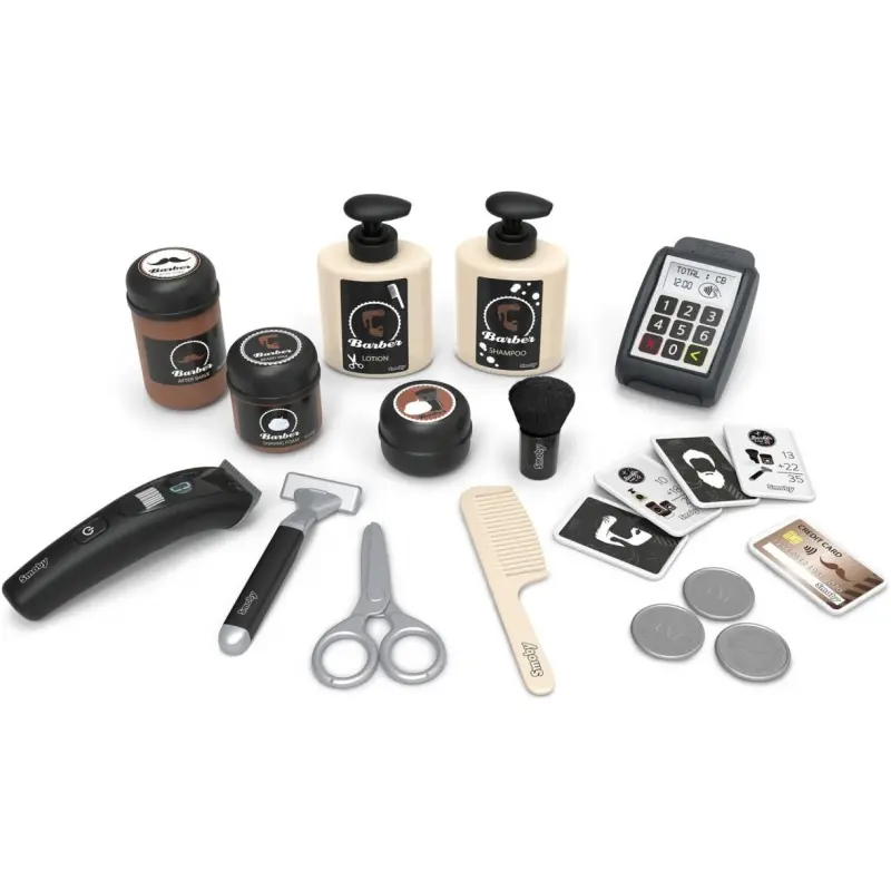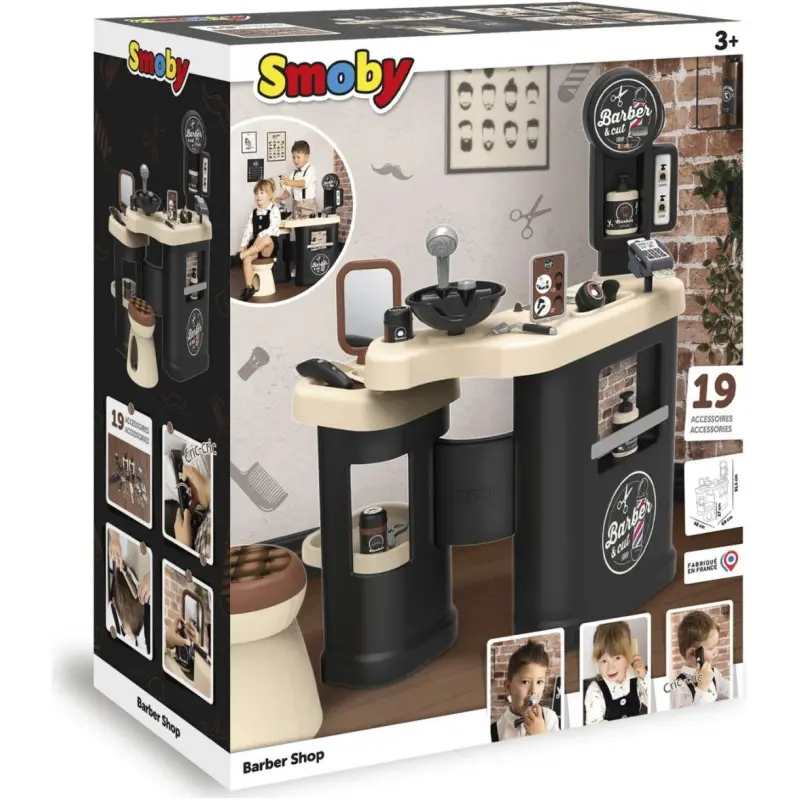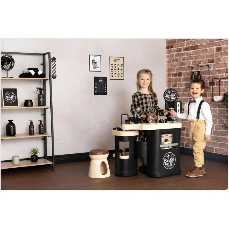 Iskustvo potpunog frizerskog salona s Barber & Cut Salonom od Smoby-ja! Ovaj izvanredan set pruža pravu atmosferu frizerskog salona, s kompletnim prostorom za njegu kose, brade, pranje kose i čak šalterom za naplatu.