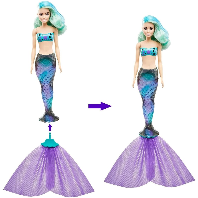 Lutke Barbie Color Reveal pružaju unboxing doživljaj prepun iznenađenja – njih sedam! Prekrasna lutka sirena je zagarantirana, ali izgled svake lutke ostaje misterija dok se ne otkrije.