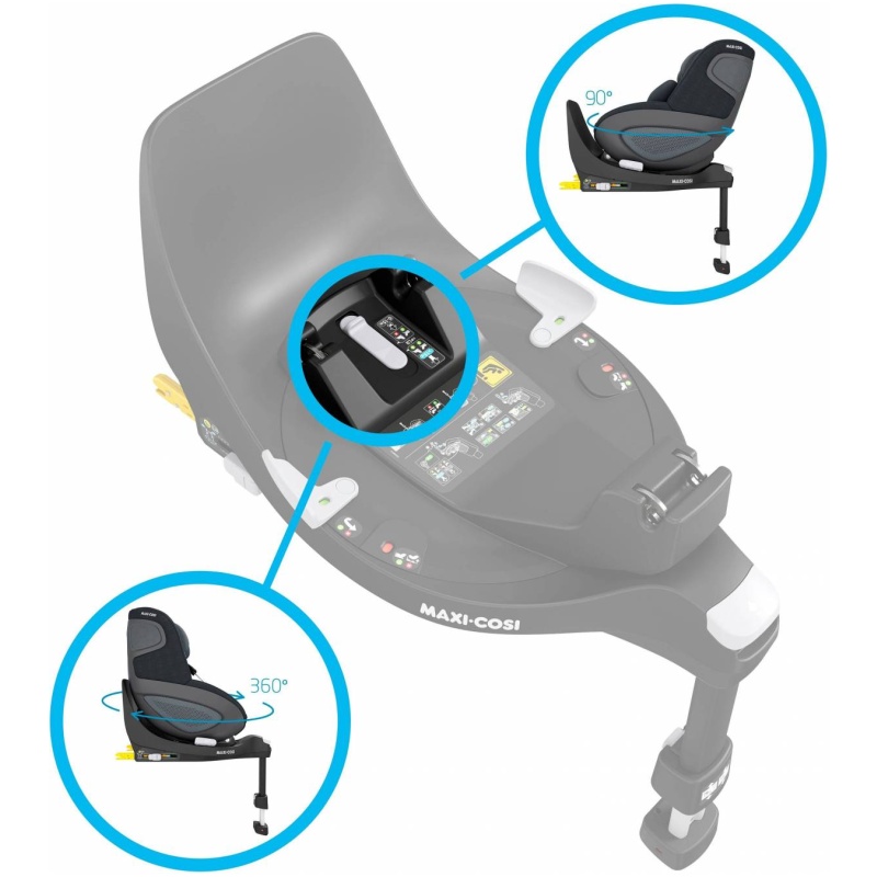 Tehnologija FlexiSpin – s ručkom za okretanje od 360 stupnjeva. Kompatibilne dječje autosjedalice mogu se okretati posebno udobno i jednostavno samo jednom rukom. Okretanje autosjedalice na stranu automobila osigurava da vaše dijete može ući i udobno se zakopčati. Zatim se, zahvaljujući bazi, dječja autosjedalica može lako postaviti u položaj okrenut prema natrag ili prema naprijed. Zahvaljujući okretnoj kapiji, vaša beba se može sigurno voziti u načinu rada okrenutom prema natrag do dobi od 15 mjeseci – prema preporuci.