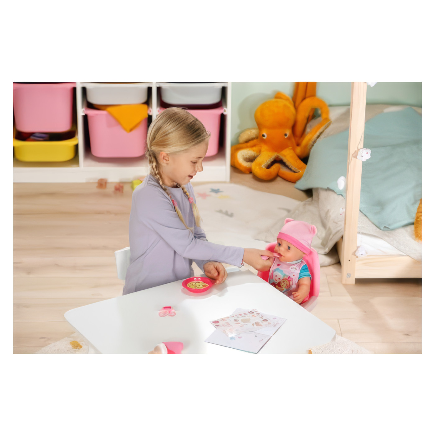 • Voda i hranjenje kao prava beba: Uz poseban tanjur i kahlicu “water magic”, djeca mogu vidjeti pojavu hrane i “posla” u kontaktu s vodom, što unosi dodatnu čaroliju u igru.