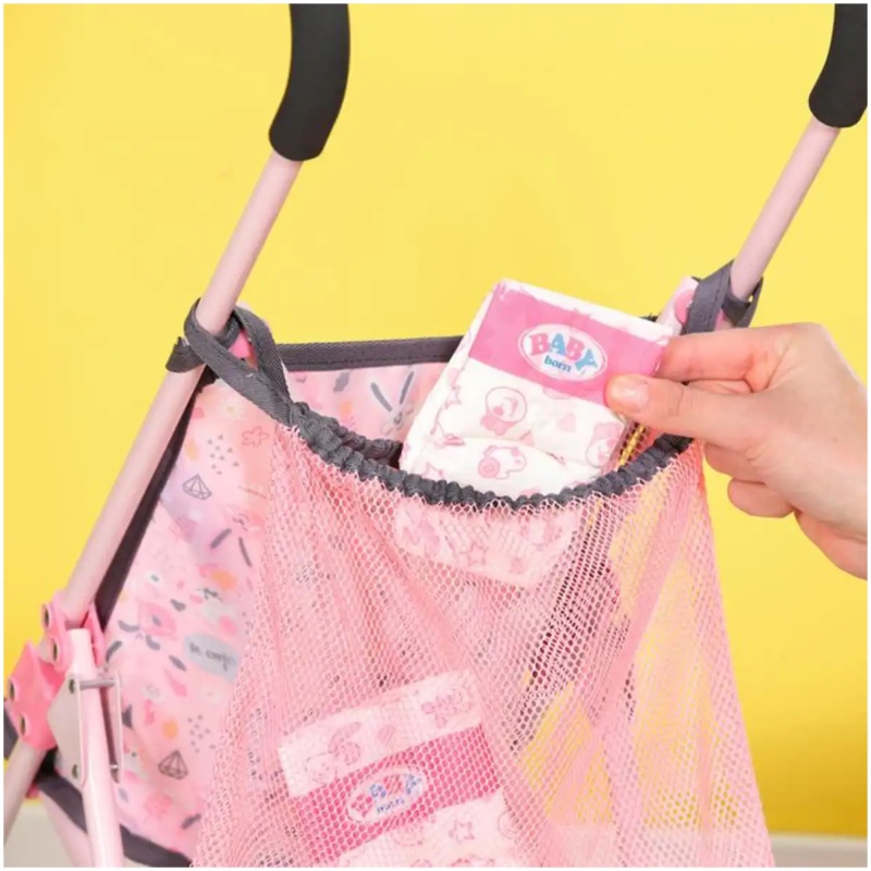 Uz kolica dolazi i praktična vrećica za pohranu, koja se nalazi iza sjedala. Ta vrećica je savršena za pohranu svih potrebnih stvari za piknik ili igru u parku. Tako će Baby Born uvijek imati sve što joj treba, bez obzira na to koliko dugo traje igra.