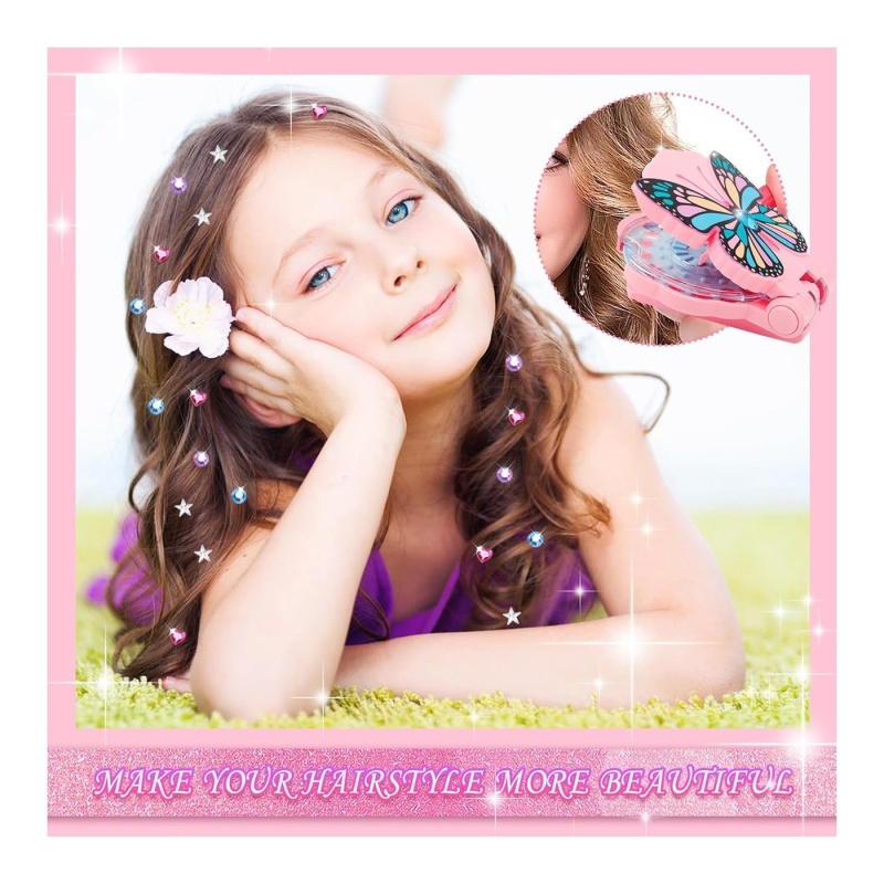 Opremljen sa 180 sjajnih rhinestona i nizom drugih dodataka, poput šarenih perika, leptir ukosnica i cvjetnih iglica za kosu, ovaj set nudi beskonačne mogućnosti. Ključna karakteristika koja ovaj proizvod čini posebnim je inovativni aplikator za rhinestone. Njegov dizajn omogućuje brzo i precizno postavljanje sjajnih dragulja na kosu, bez nereda i muke. Samo jednom pritisnite i dobit ćete blistav izgled koji traje cijeli dan.