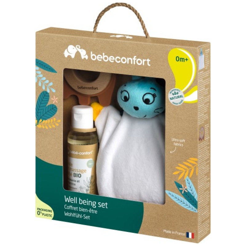 Svaki detalj ovog inovativnog ekološkog seta posebno je razvijen za osjetljivu bebnu kožu. Kao prirodna obrana, organsko ulje za masažu bez mirisa i dermatološki testirano pruža bebi zaštitni film koji oponaša njenu prirodnu barijeru. Bogato prirodnim emolijentima, ovo ulje sadrži organsko suncokretovo ulje, organsko ulje sjemenki sezama, prirodni vitamin E, sojino ulje i ekstrakt smeđe morske trave koji smiruje bebu i pomaže joj da spava mirno.