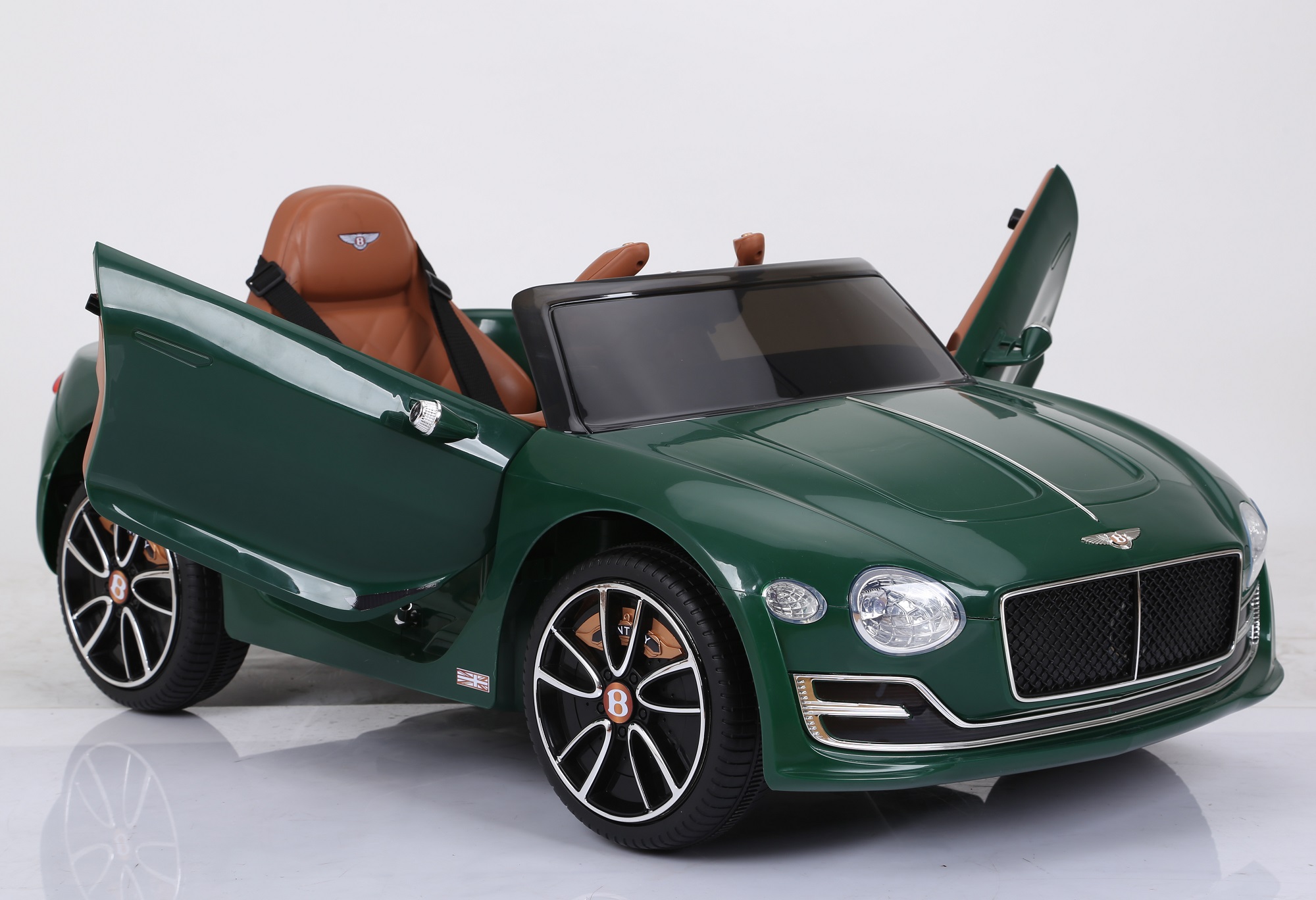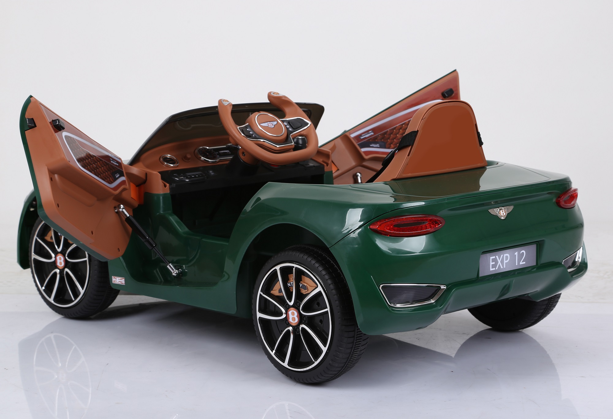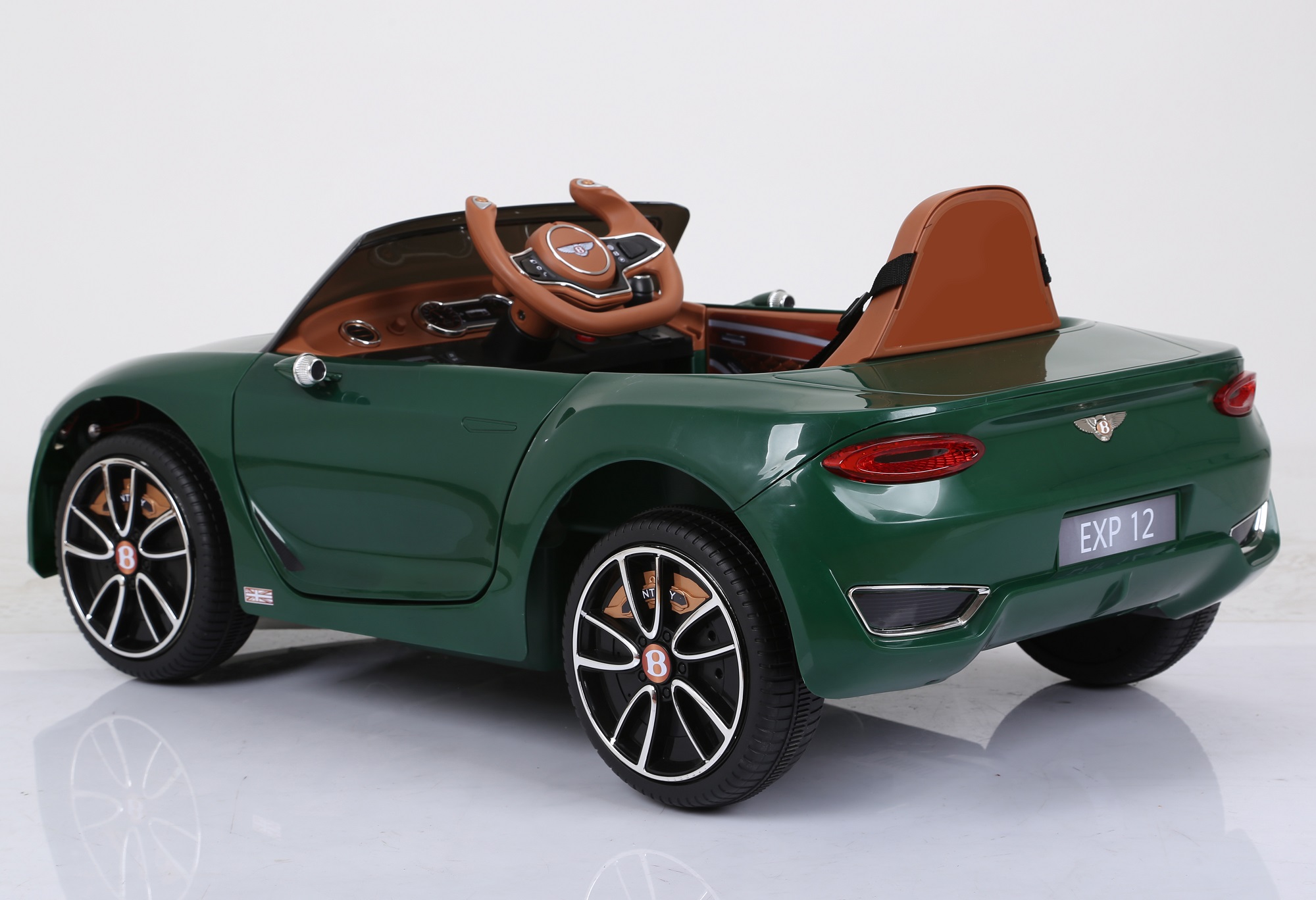 Dječji automobil na baterije rekreiran je što je moguće realističnije na temelju Bentley. Korišteni logotipi uključuju licencu samog Bentley . Dječji auto opremljen je LED svjetlima sprijeda i straga. Dječji autić također ima vrata koja se otvaraju, sirenu, indikator napajanja te kontrolu zvuka.