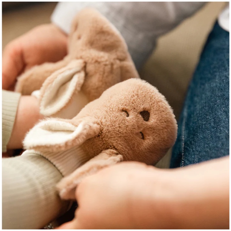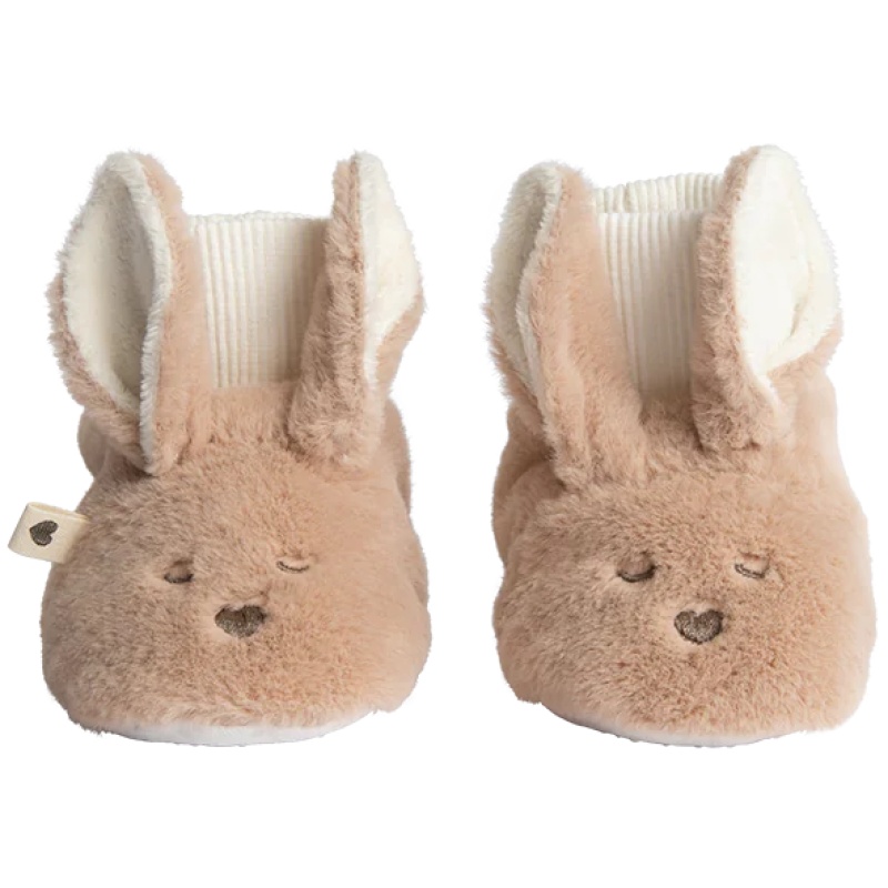 Ove BIBS papučice imaju široke bijele rebraste rubove oko gležnjeva, koji osiguravaju da papučice čvrsto ostanu na nogicama vaše bebe. Unutrašnjost papučica također je bijela i izrađena od meke tkanine. Ispod stopala se nalaze male gumene izbočine koje osiguravaju dobar osjećaj pri hodu. Uši klokana sadrže šuškavu papirnatu podlogu koja je zabavna za malene istraživače.