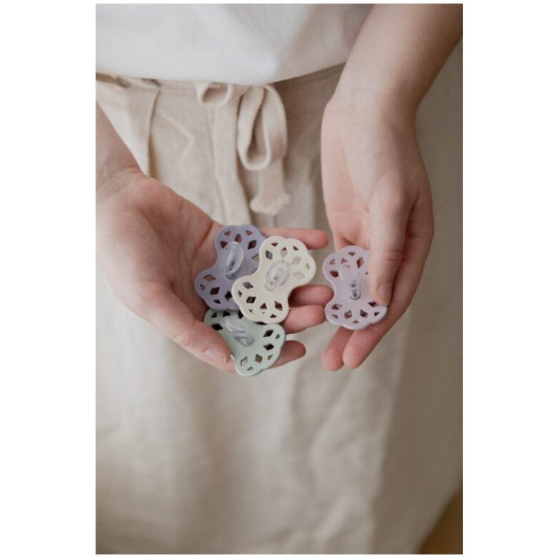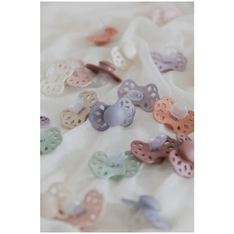 BIBS Infinity Silicone je duda koja simbolizira krug života, beskraja i vječnosti. Dizajn je elegantan i fokusiran je na klasičnu estetiku u modernoj paleti nordijskih nijansi. Njegov organski i mekani oblik u kombinaciji sa sirovim unutarnjim oblikom savršena je međuigra između sirovog i mekog simbolizirajući stalno promjenjiva, ali ponavljajuća nordijska godišnja doba.