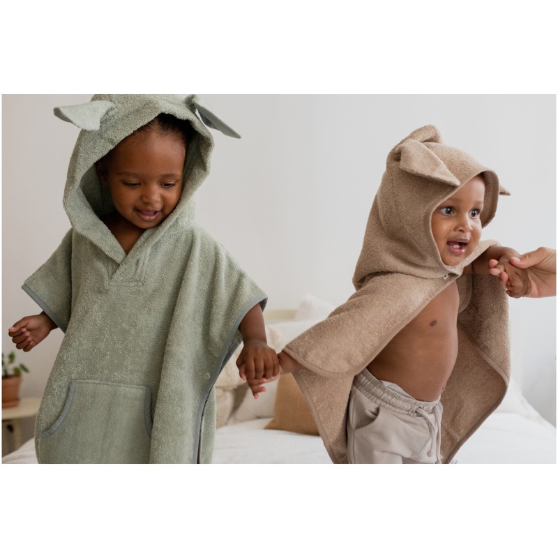 Izrađen od vrhunskog 100% organskog pamučnog frotira certificiranog prema OEKO-TEX® standardima, ovaj ručnik je izuzetnog kvaliteta. Posebno debeli materijal pruža mekši, topliji i zagrljajem bogat doživljaj. Njegova upijajuća svojstva i mekana kapuljača čine ga savršenim izborom nakon kupanja.