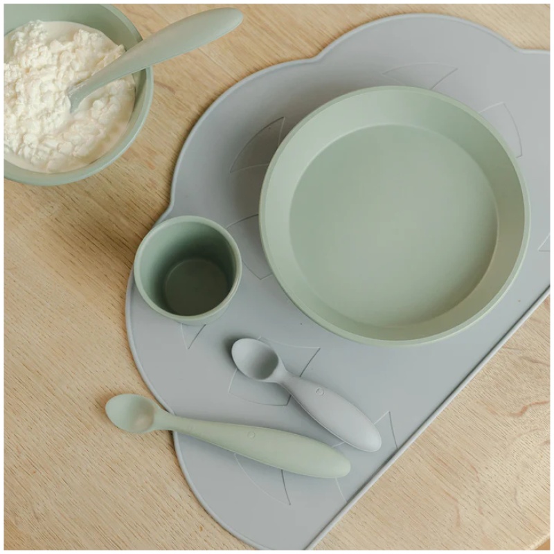 Ovaj podmetač namijenjen je djeci starijoj od 6 mjeseci i izrađen je od sigurnog i 100% prehrambenog silikona. Njegova paleta boja savršeno se uklapa u moderno obiteljsko okruženje.