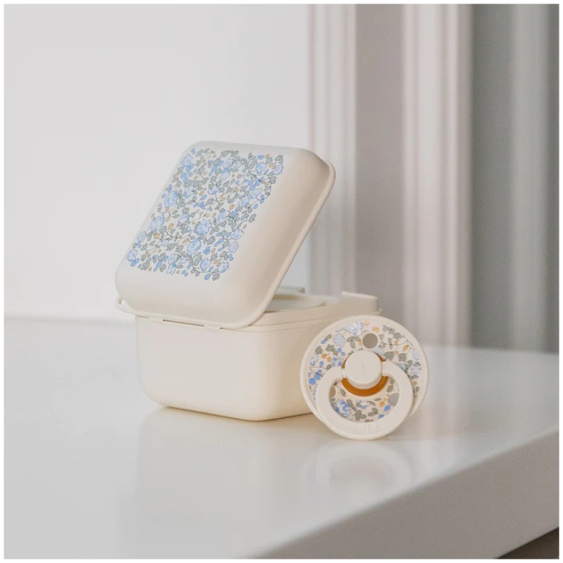 Bibs X Liberty Pacifier Box Eloise Ivory je višenamjenski proizvod koji će vam pružiti praktičnost i stil istovremeno. Ova prekrasna kutija za dude je dizajnirana u suradnji s poznatim modnim brendom Liberty, donoseći vam kombinaciju elegancije i funkcionalnosti.