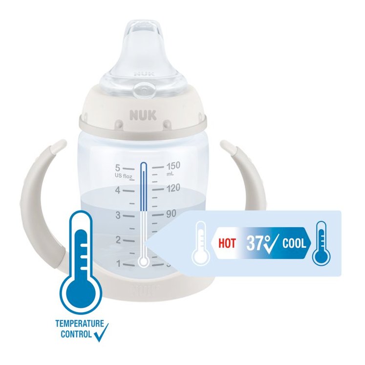 S NUK kontrolnim indikatorom temperature, roditelji mogu biti sigurni da je sadržaj bočice uvijek na sigurnoj temperaturi za osjetljive ručice vašeg mališana. Kada tekućina postane prevruća, indikator unutar oznaka mjera promijenit će boju u bijelu, dajući vam mir i sigurnost u svakodnevnim situacijama.