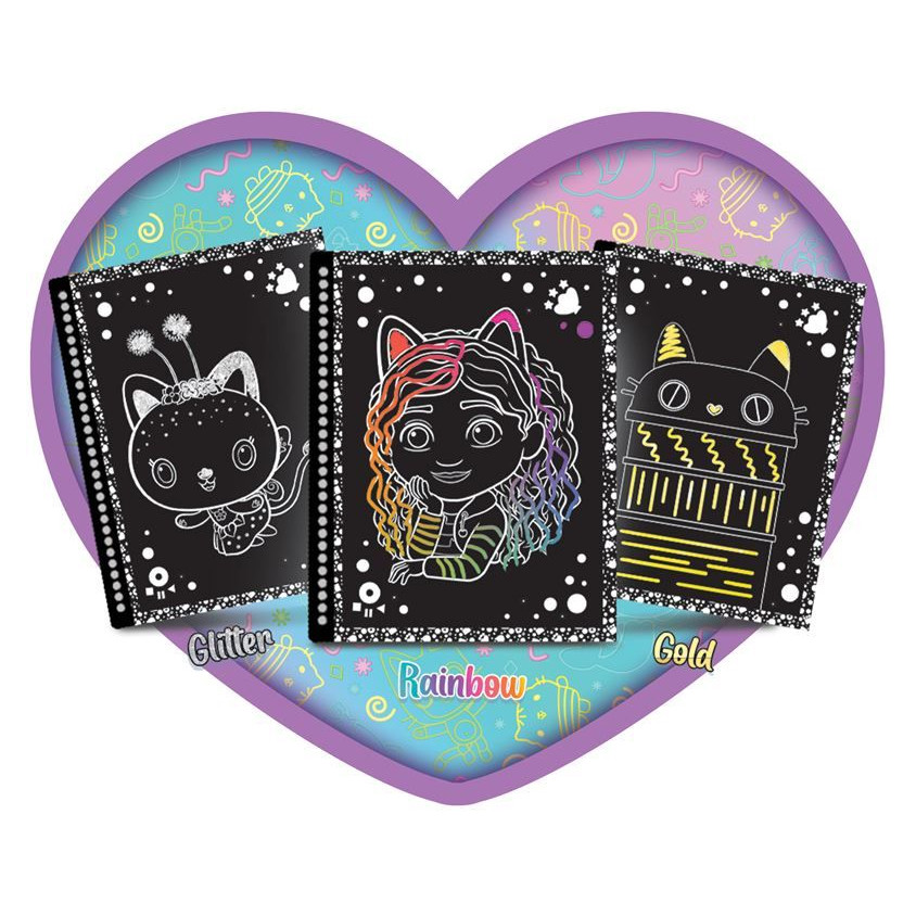 Uzmi stilus u ruke i upusti se u uzbudljivu avanturu grebanja i otkrivanja boja koja će oduševiti svakog malog fana Gabby’s Dollhouse! Ova igračka spaja zabavu s kreativnim izražavanjem, pružajući djeci priliku da sama otkriju brojne sjajne i dekorativne efekte skrivenih ispod crnog sloja. Jednostavno grebi i gledaj kako se pojavljuju razigrane ilustracije i živi tonovi – svaka stranica nudi novo iznenađenje.