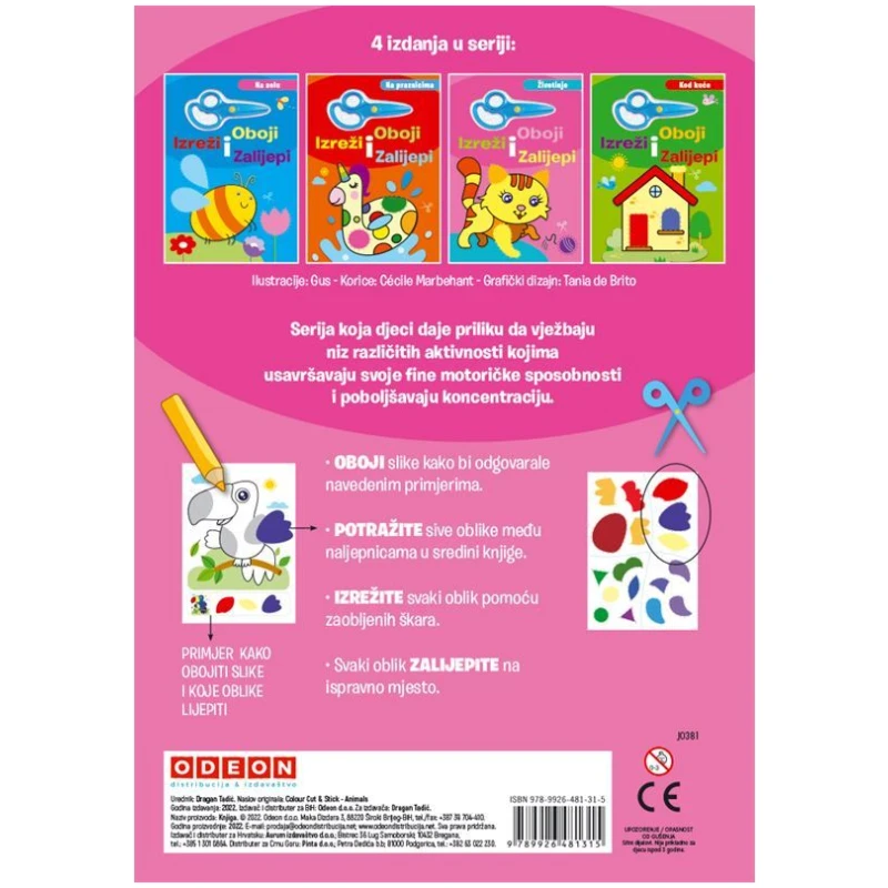 Bojanka sa škarama “Izreži, Oboji i Zalijepi” je idealna za djecu koja vole provoditi svoje slobodno vrijeme kreativnim aktivnostima. Ova serija bojanki pruža djeci priliku da vježbaju razne aktivnosti kako bi poboljšali svoje fine motoričke sposobnosti i koncentraciju.