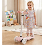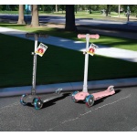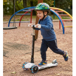 - Udobnost i praktičnost: Upravljač romobila se može podesiti u četiri različite visine, što znači da romobil “raste” zajedno s vašim djetetom, pružajući mu godinama udobnost i prilagođenost. Osim toga, lakoća kojom se upravljač prilagođava omogućava brzu promjenu za starije ili mlađe članove obitelji koji također žele isprobati vožnju.